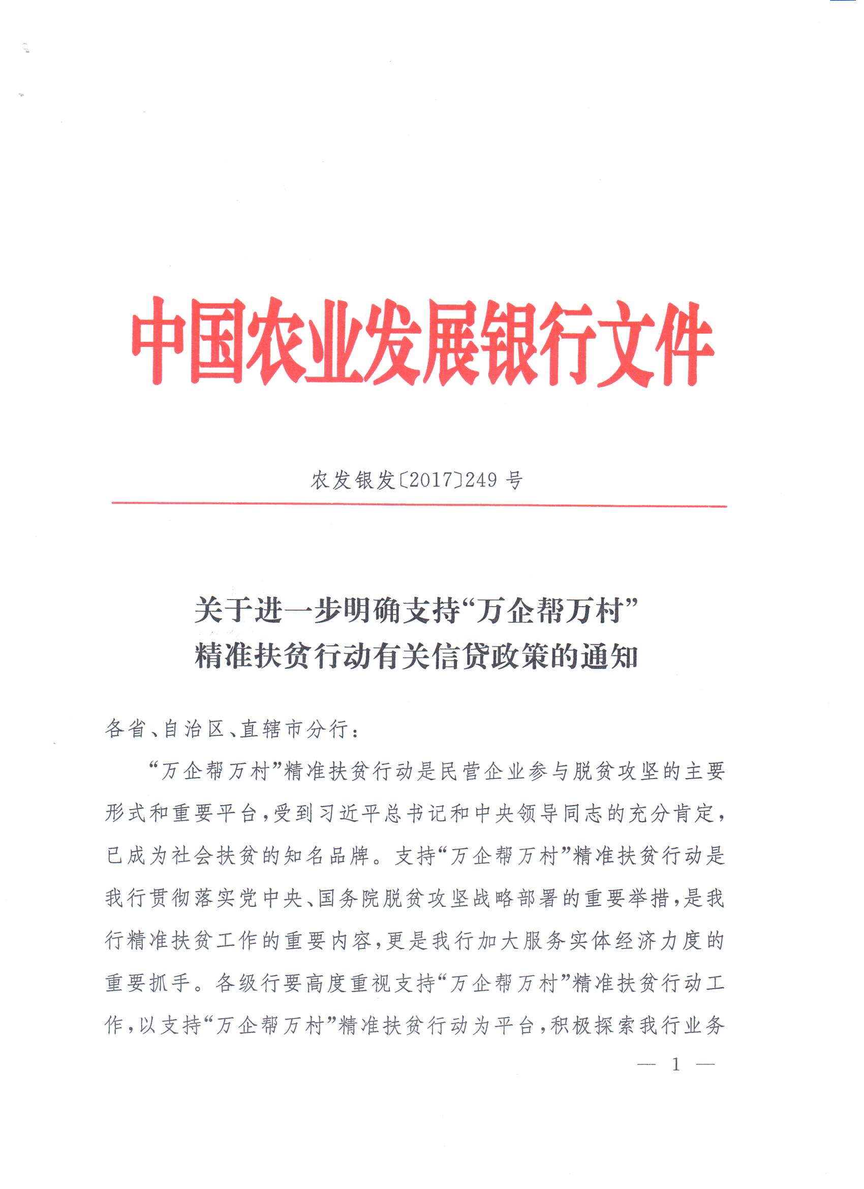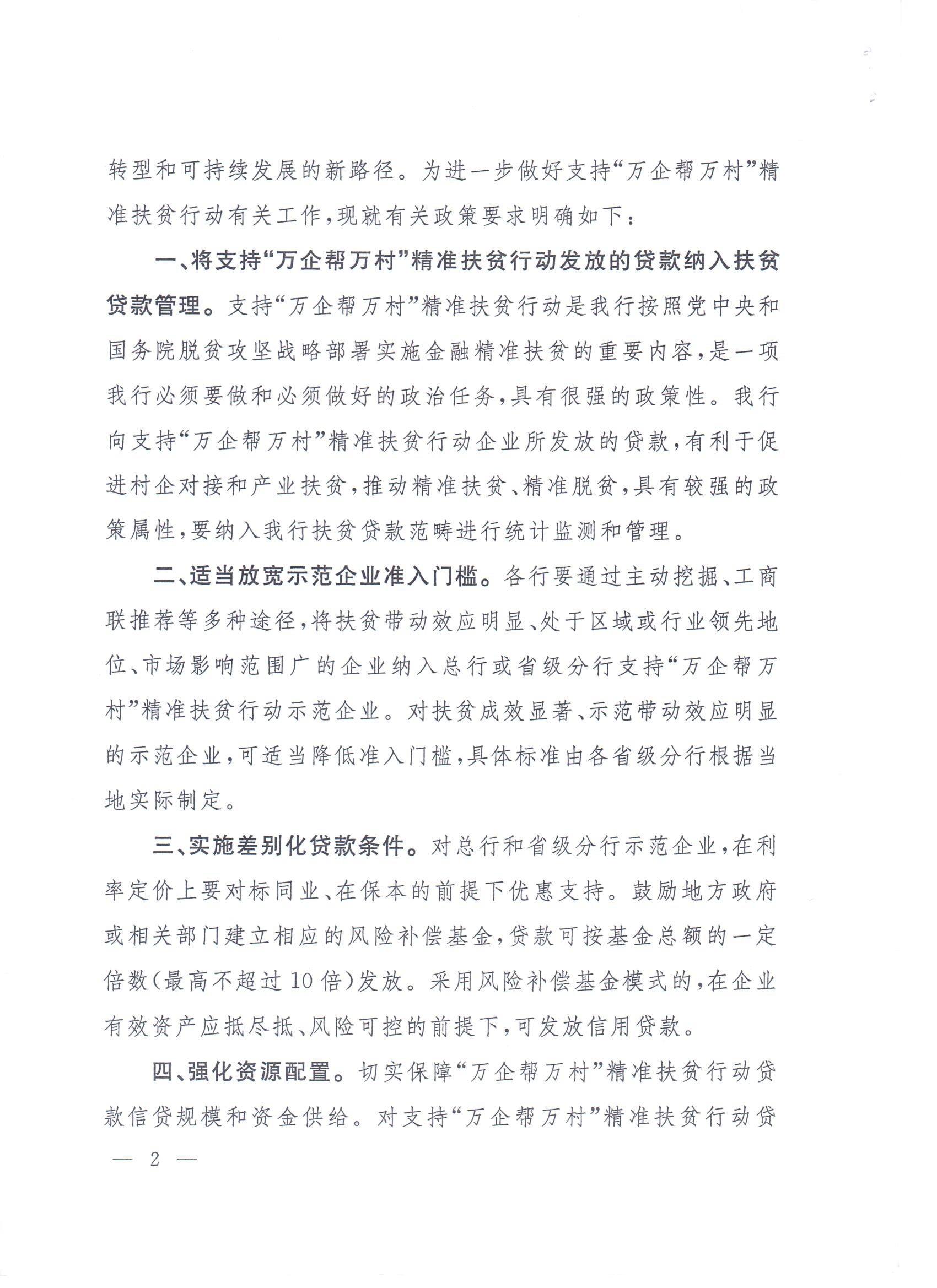 关于进一步明确支持“万企帮万村”精准扶贫行动有关信贷政策的通知